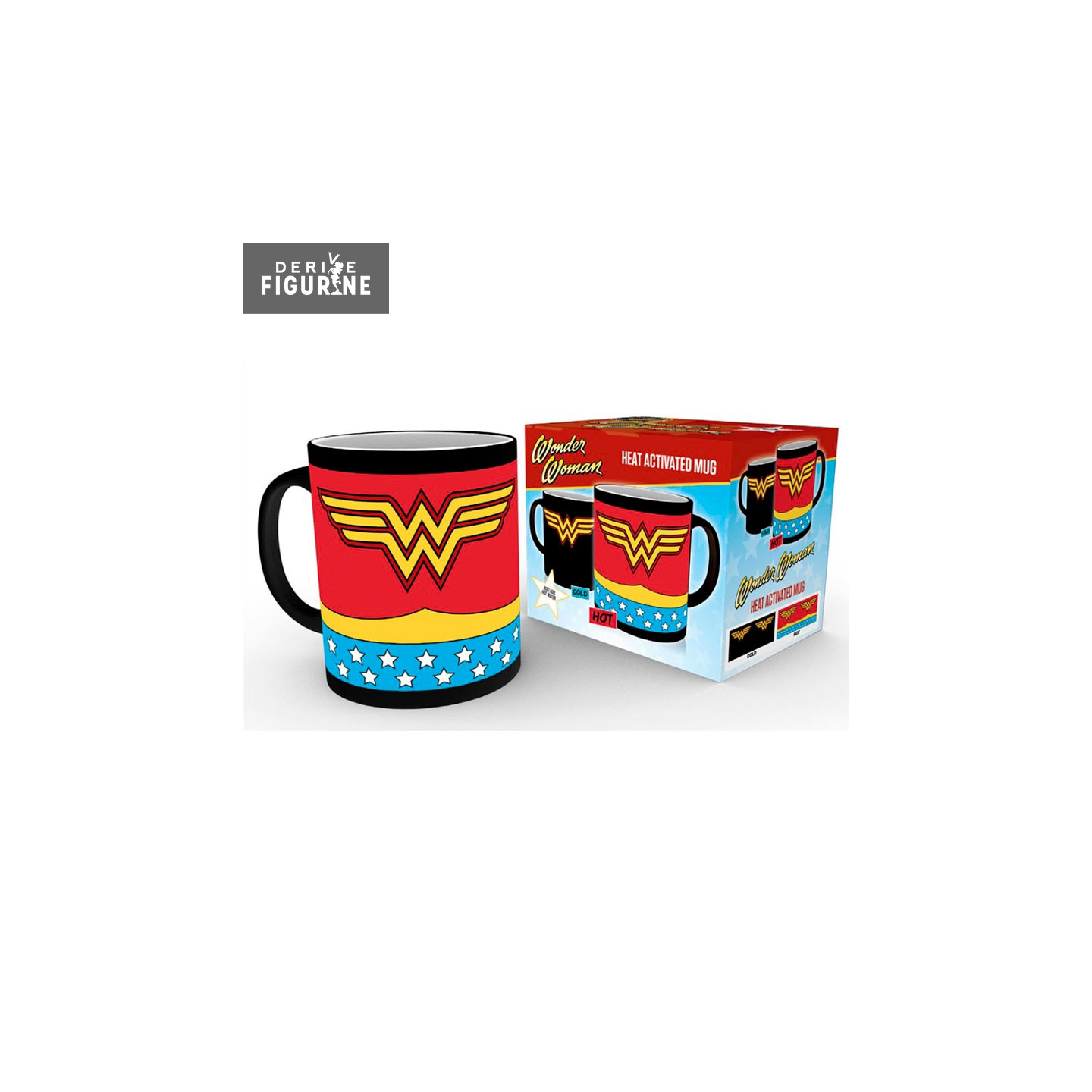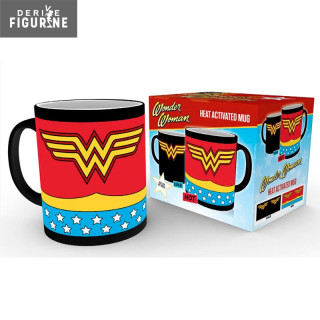 Voici un mug aux couleurs de votre héroïne favorite. D’abord noire avec les W W représentant Wonder Woman, la tasse une fois pleine de votre café, chocolat chaud, thé ou tisane, laissera apparaître les couleurs de la tenue complète de notre héroïne.