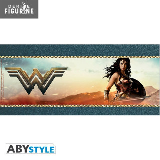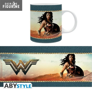 Voici un joli mug dont l'image est tirée du film Wonder Woman. On y voit sont emblème, ainsi que la belle Gal Gadot dans se tenue d'Amazone.