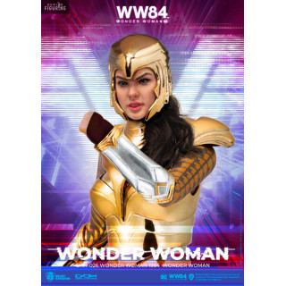 Figurine officielle de Wonder Woman mesurant environ 21 centimètres de haut, à l'échelle 1/9. Elle est issue de la collection Dynamic Action Heroes. Le fabricant est Beast Kingdom.