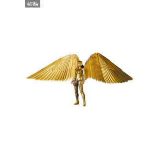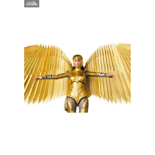 Si vous avez vu le film Wonder Woman 1984, vous avez pu découvrir Diana Prince dans une armure dorée. Il s'agit de celle d'Asteria, une guerrière reconnue chez les amazone. Elle possède des ailes imposantes, mais a toujours également son lasso de vérité. Si vous le souhaitez, il est même possible de l'exposer sans son casque.
