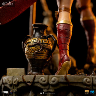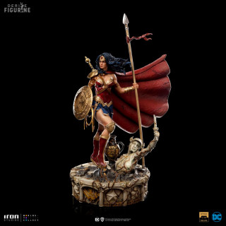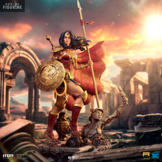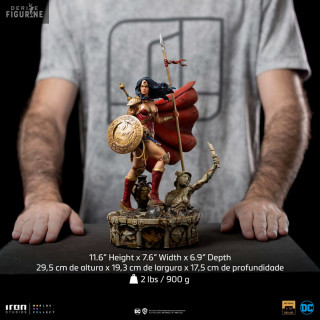 Figurine officielle de Wonder Woman, Unleashed Deluxe en résine mesurant environ 30 centimètres de haut, à l'échelle 1/10. Elle est issue de la collection Art Scale. Le fabricant est Iron Studios.