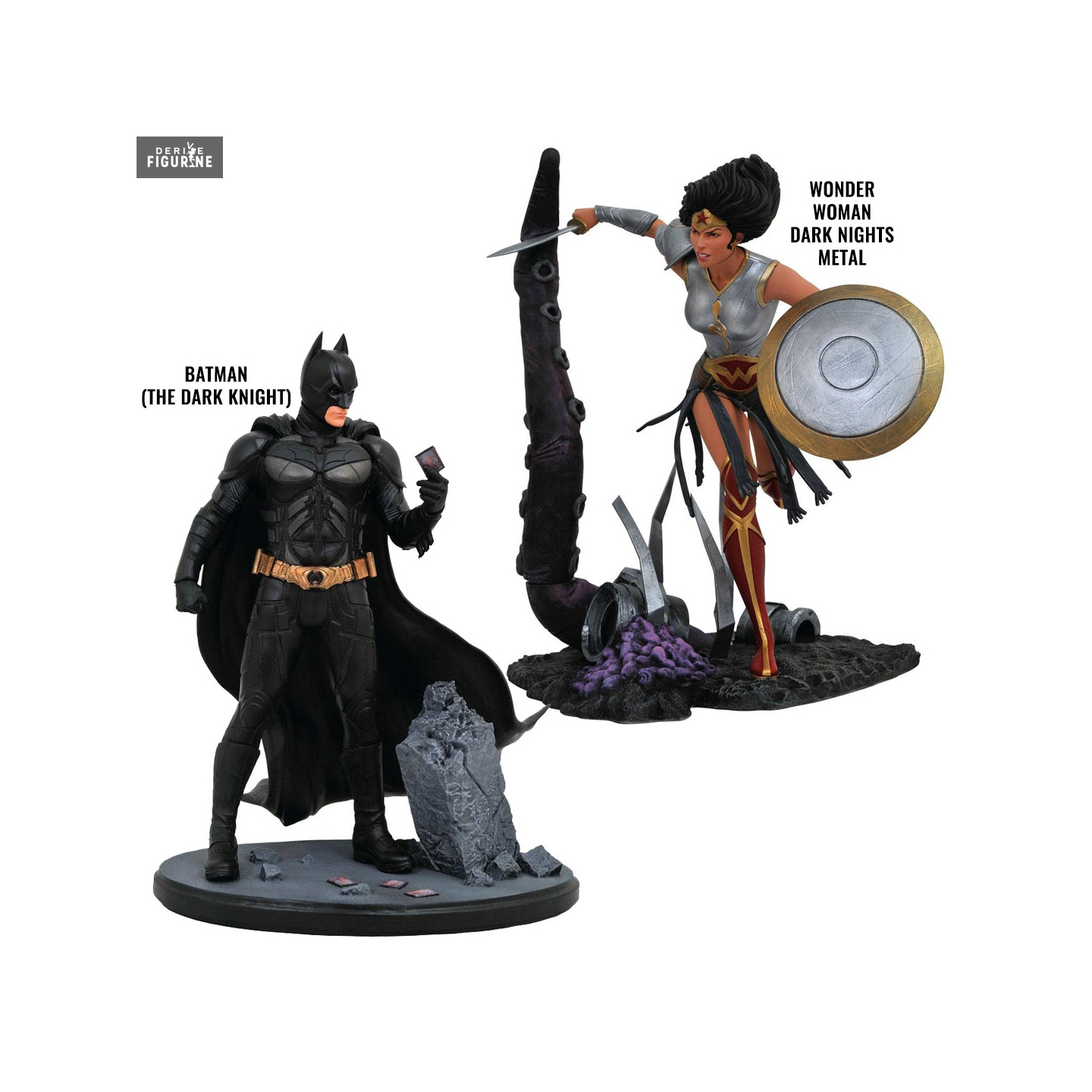 Le choix ne sera sûrement pas simple, mais sachez que vous avez la possibilité de vous offrir une figurine de Batman venant des films The Dark Knight tenant une carte à jouer dans la main, ou celle de Wonder Woman qui elle vient tout droit du comic Dark Nights Metal.
