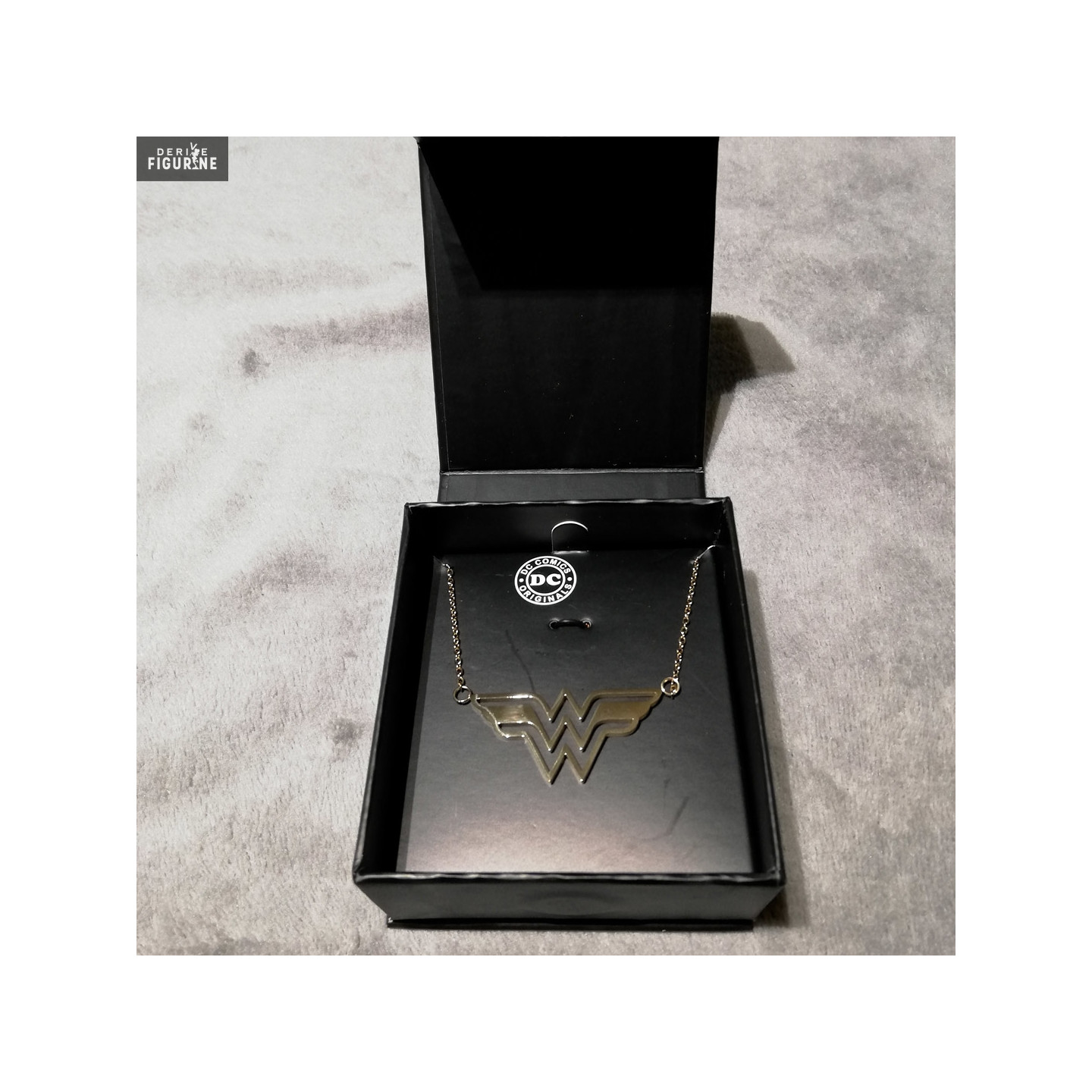 Vous êtes une grande fan de Wonder Woman, car il s'agit d'une femme forte, qui n'a peur de rien ? Alors pourquoi ne pas vous offrir son logo en pendentif. En plus de cela, il y a même une chaînette assortie pour parfaire le tout. Un bijou chic et discret à la fois.