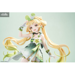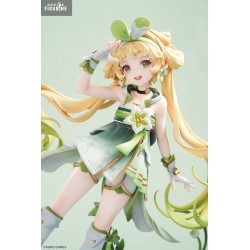 Cette figurine capture toute sa grâce dans une pose aérienne, comme portée par les vents et la vitalité des plantes. Sa tenue verte et blanche, aux motifs floraux délicats, reflète son affinité avec la nature et la lumière. Ses longs cheveux blonds ondulés, ponctués de petites fleurs, ajoutent une impression de fluidité et de légèreté à l’ensemble.