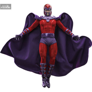 Magneto, le maître du magnétisme, est vêtu de son costume classique rouge et violet métallisé, complété par une cape en tissu avec fil de fer pour des poses dynamiques. La figurine dispose d’une tête casquée et de mains interchangeables, dont certaines sont équipées d’un mécanisme magnétique permettant de tenir de petits accessoires en métal. Elle est également accompagnée d’effets de couleur amovibles pour simuler ses pouvoirs magnétiques, ainsi que d’un support de figurine adapté à la couverture de la bande dessinée1234.