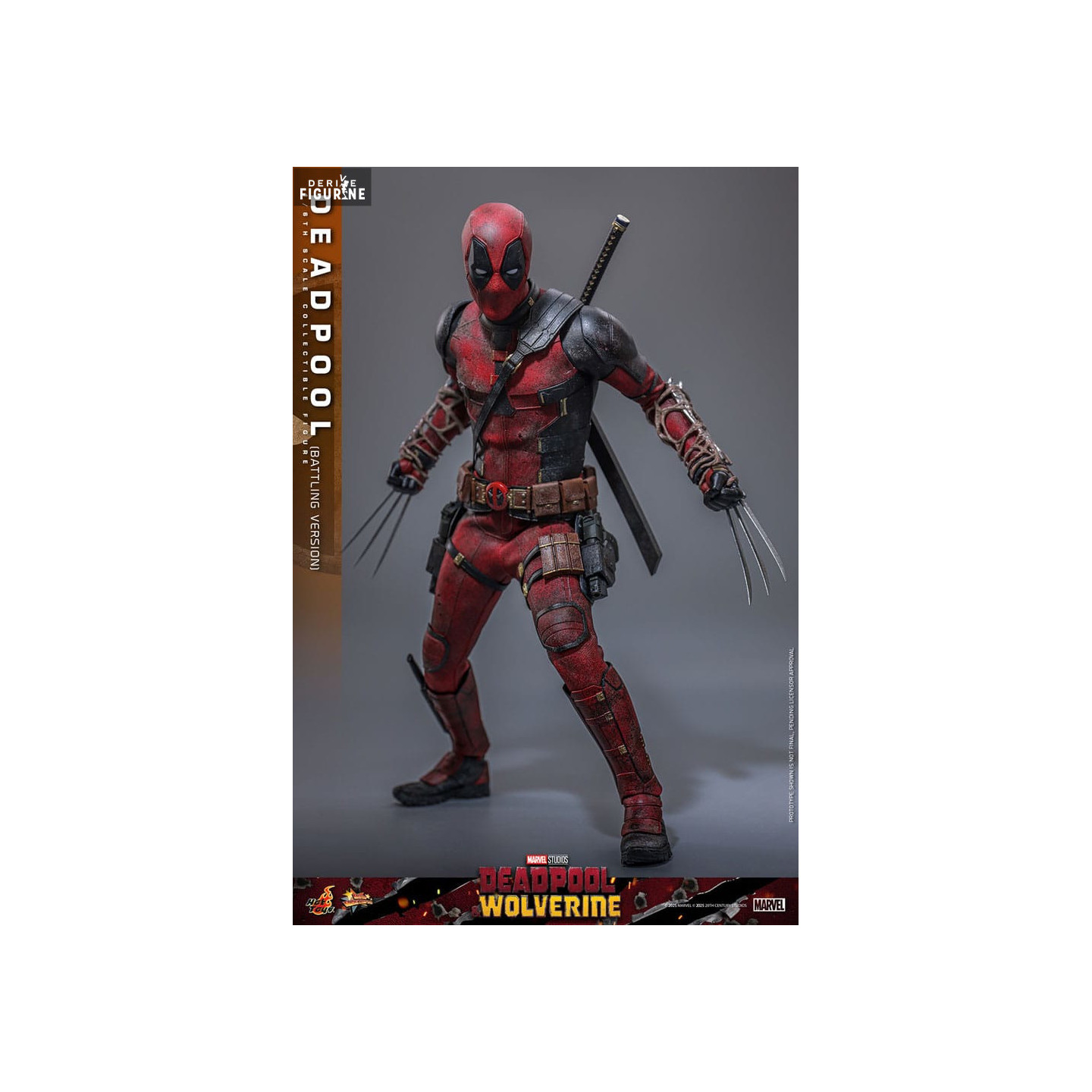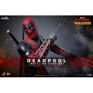Figurine officielle Deadpool (Battling Version) mesurant environ 31 centimètres de haut, à l'échelle 1/6. Elle est issue de la collection Movie Masterpiece. Le fabricant est Hot Toys.