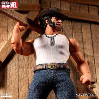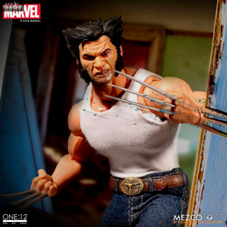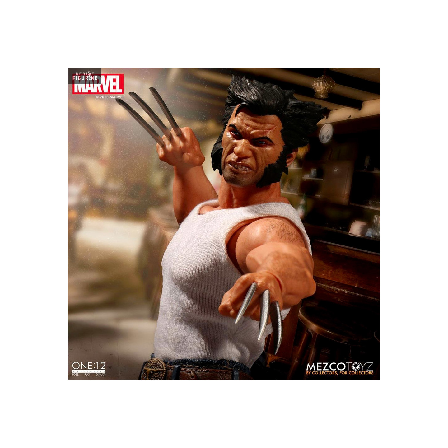Figurine officielle de Logan mesurant environ 16 centimètres de haut, à l'échelle 1/12. Elle est issue de la collection One:12. Le fabricant est Mezco Toys.
