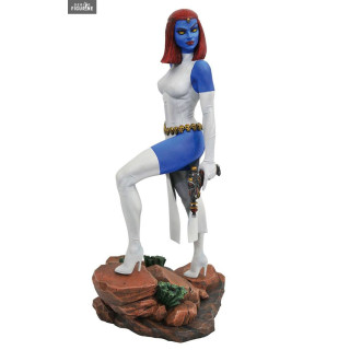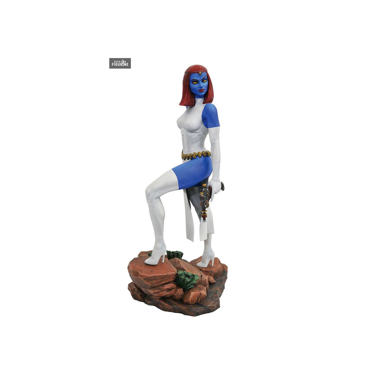 Figurine officielle de Mystique en résine, mesurant environ 28 centimètres de haut. Le fabricant est Diamond Select Toys.