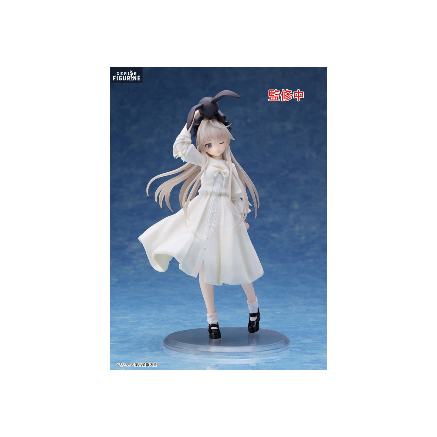 La figurine représente Kasugano Sora dans une posture gracieuse et légèrement espiègle, capturant parfaitement son caractère à la fois innocent et mystérieux. Vêtue d'une robe blanche élégante, Sora dégage une aura de pureté et de délicatesse. Sa longue chevelure blonde est magnifiquement sculptée, tombant en vagues douces autour de son visage délicat, qui est orné d'un sourire subtil et d'un clin d'œil charmeur.