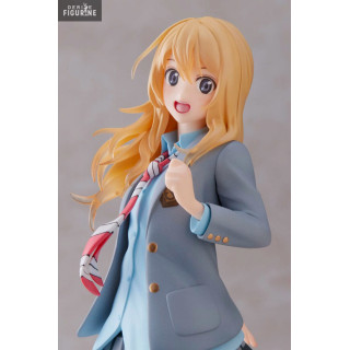 Figurine officielle de Kaori Miyazono, School Uniform en PVC mesurant environ 18 centimètres de haut. Le fabricant est Taito.