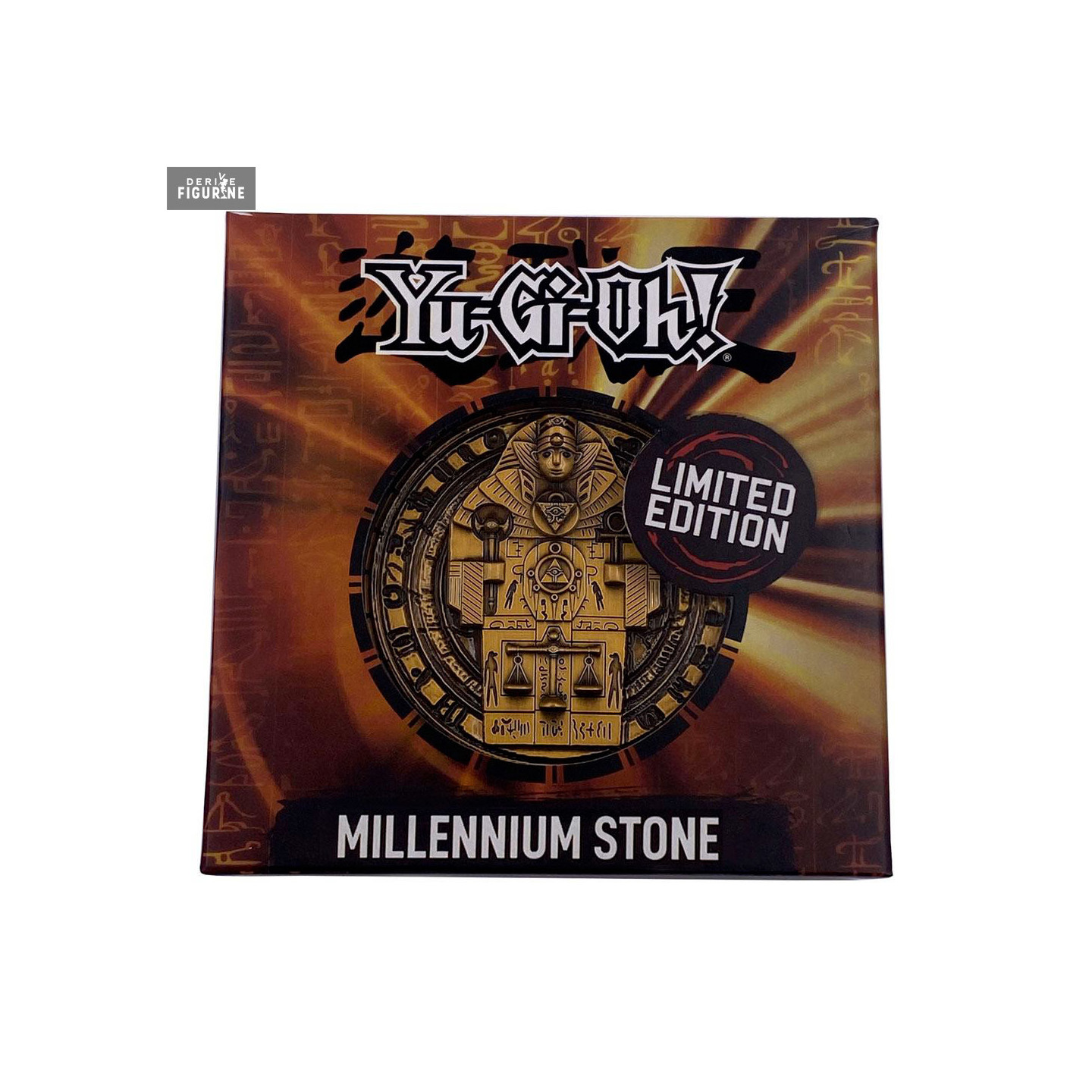Si vous êtes fan de Yu-Gi-Oh!, vous savez que la Millenium Stone est un artefact précieux et vous avez la chance de pouvoir y mettre la main dessus. Il regroupe les sept objets du millénium, à savoir la puzzle, l'anneau, l’œil, le collier, la clé, la balance et la baguette. A savoir que cette pièce est limitée à seulement 9 995 exemplaires numérotés.