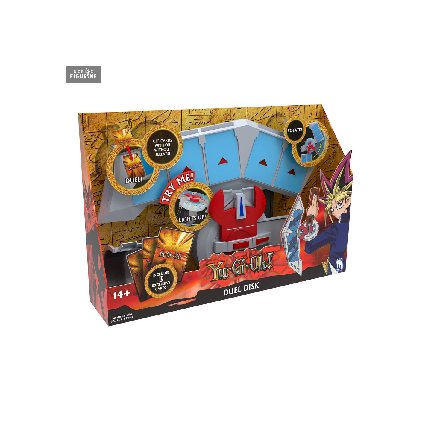Voici la réplique officielle du célèbre Duel Disk Launcher de l'univers de Yu-Gi-Oh! ! Chaque duelliste pour combattre avec ses cartes en utilise et cette réplique propose en plus des effets électroniques et lumineux.