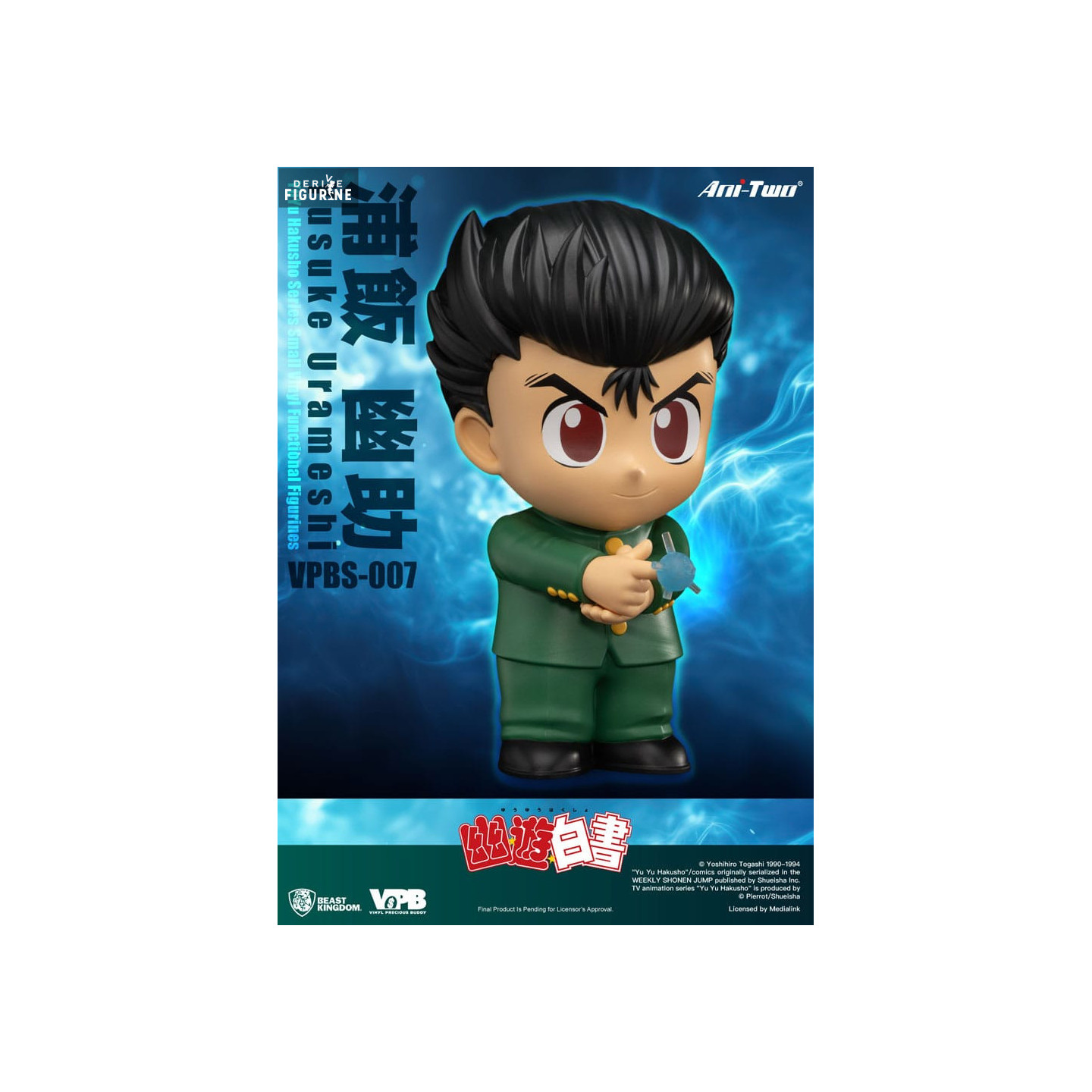Figurine officielle de Yusuke Urameshi en PVC mesurant environ 25 centimètres de haut. Elle est issue de la collection Small Vinyl Functional Figurines. Le fabricant est Beast Kingdom.