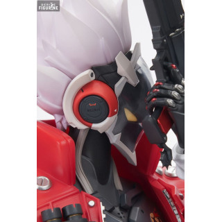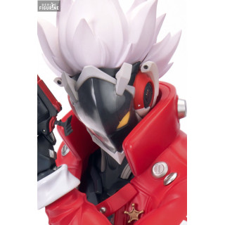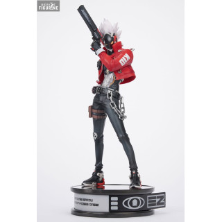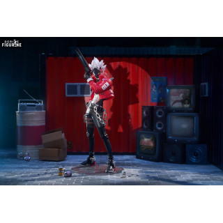 Cette figurine de Billy Kid, fabriquée par Apex Innovation, est une reproduction fidèle du personnage à l’échelle 1/7, mesurant environ 30 cm de haut. Réalisée en PVC, elle présente un niveau de détail remarquable, capturant les éléments distinctifs de Billy Kid, de ses chaînes métalliques à son holster, en passant par la texture de son blouson et les finitions de son masque. Sa posture, un pistolet levé et une allure déterminée, suggère un personnage prêt à affronter n'importe quel défi. Le socle de la figurine, orné de motifs et de textes futuristes, complète l’ambiance high-tech et dystopique, ajoutant une dimension narrative à cette pièce de collection.