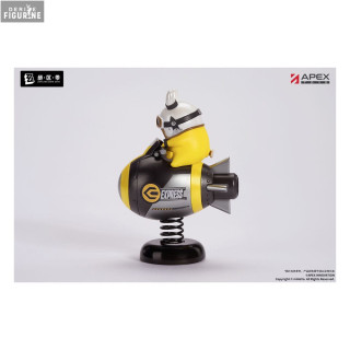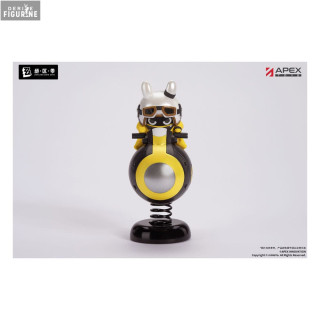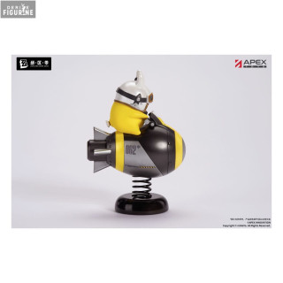 Cette figurine officielle Rocketboo, issue de la collection Happy Shake et fabriquée par Apex Innovation, capture toute la personnalité dynamique de ce petit personnage atypique. Mesurant 10 cm de hauteur et réalisée en PVC, elle représente Rocketboo chevauchant une bombe stylisée aux couleurs noires et jaunes, portant l’inscription Express, évoquant une vitesse et une énergie débordantes. Montée sur un socle à ressort, la figurine ajoute un effet de mouvement amusant et interactif qui renforce son côté ludique et expressif.