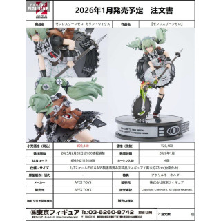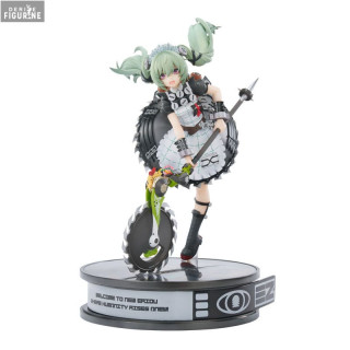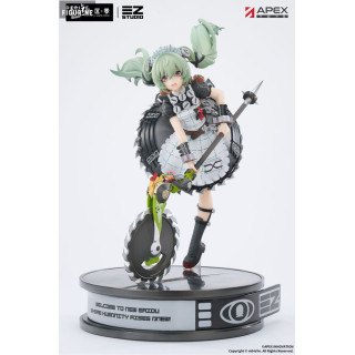 Cette figurine officielle Corin Wickes, fabriquée par Apex Innovation, est un chef-d’œuvre de détail et de dynamisme. Issue de la collection 1/7 Scale, elle mesure 27 cm de hauteur et est réalisée en PVC. Corin est représentée dans une posture pleine de mouvement, maîtrisant son monocycle cybernétique, dont la roue est finement détaillée avec des engrenages et des inscriptions techniques. Son costume de maid revisité, avec des éléments cybernétiques, ajoute une touche d’originalité et d’élégance à l’ensemble. Le socle futuriste sur lequel elle repose est orné d’inscriptions inspirées du jeu, accentuant l’immersion dans l’univers de Zenless Zone Zero.